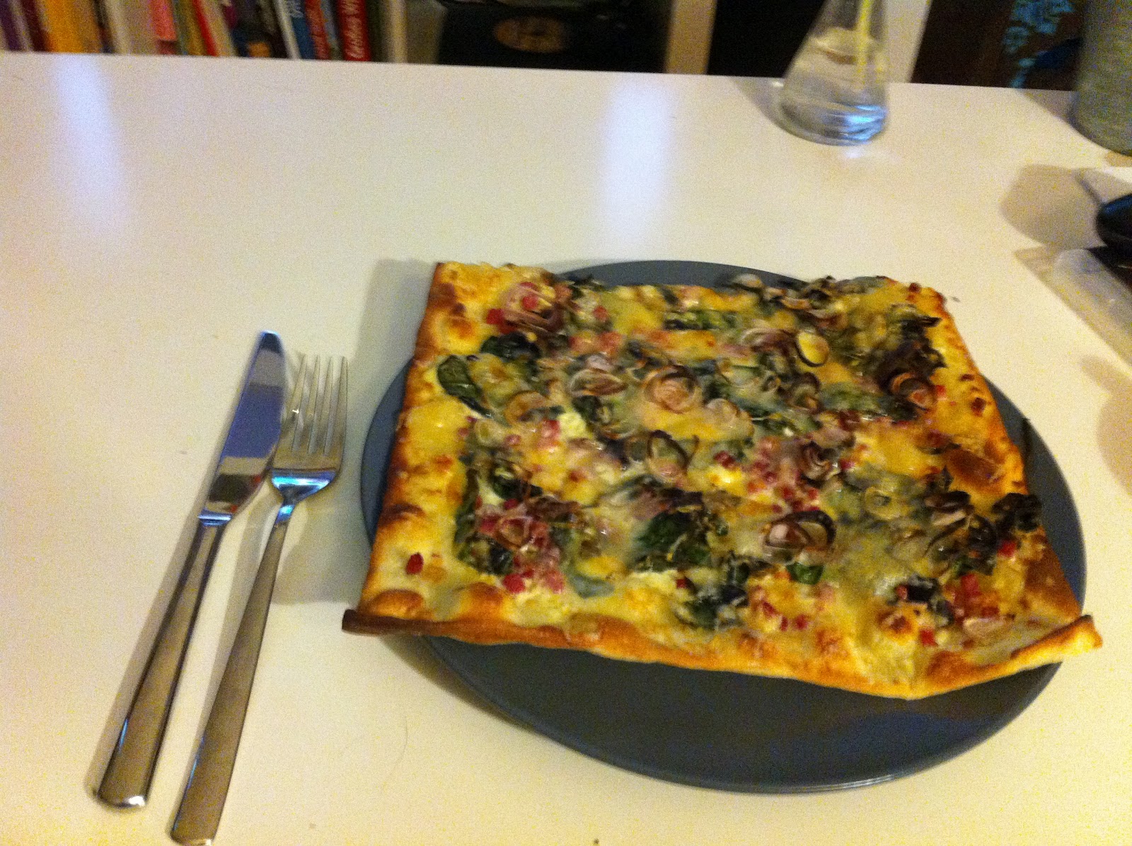 Entschädigt habe ich mich für den gebrauchten Nachmittag mit einem Flammkuchen mit Comté und Mangold. Versöhnlicher Abschluss!