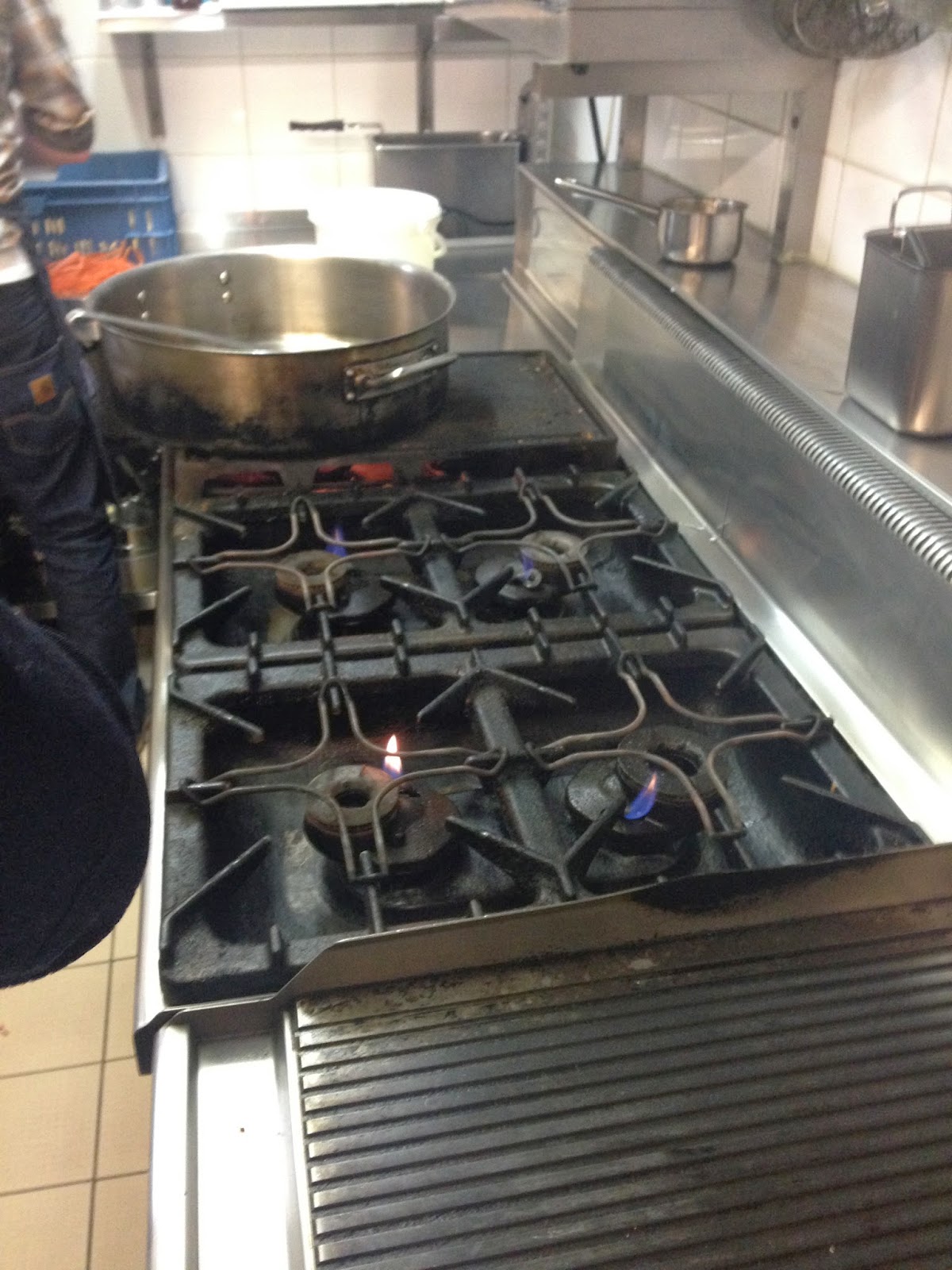 Gelernt habe ich dabei tatsächlich einiges. Zum Beispiel, dass es „fertiges“ Eigelb im Tetrapak gibt. Oder dass man Pellkartoffeln am besten mit der stumpfen Seite des Messers pellt. Oder wie man Pommes Frites im Originalrezept zubereitet: erst blanchieren, dann in Entenfett anbraten und dann in Rindertalg frittieren. Oder, dass ich gerne einen Gasherd will.