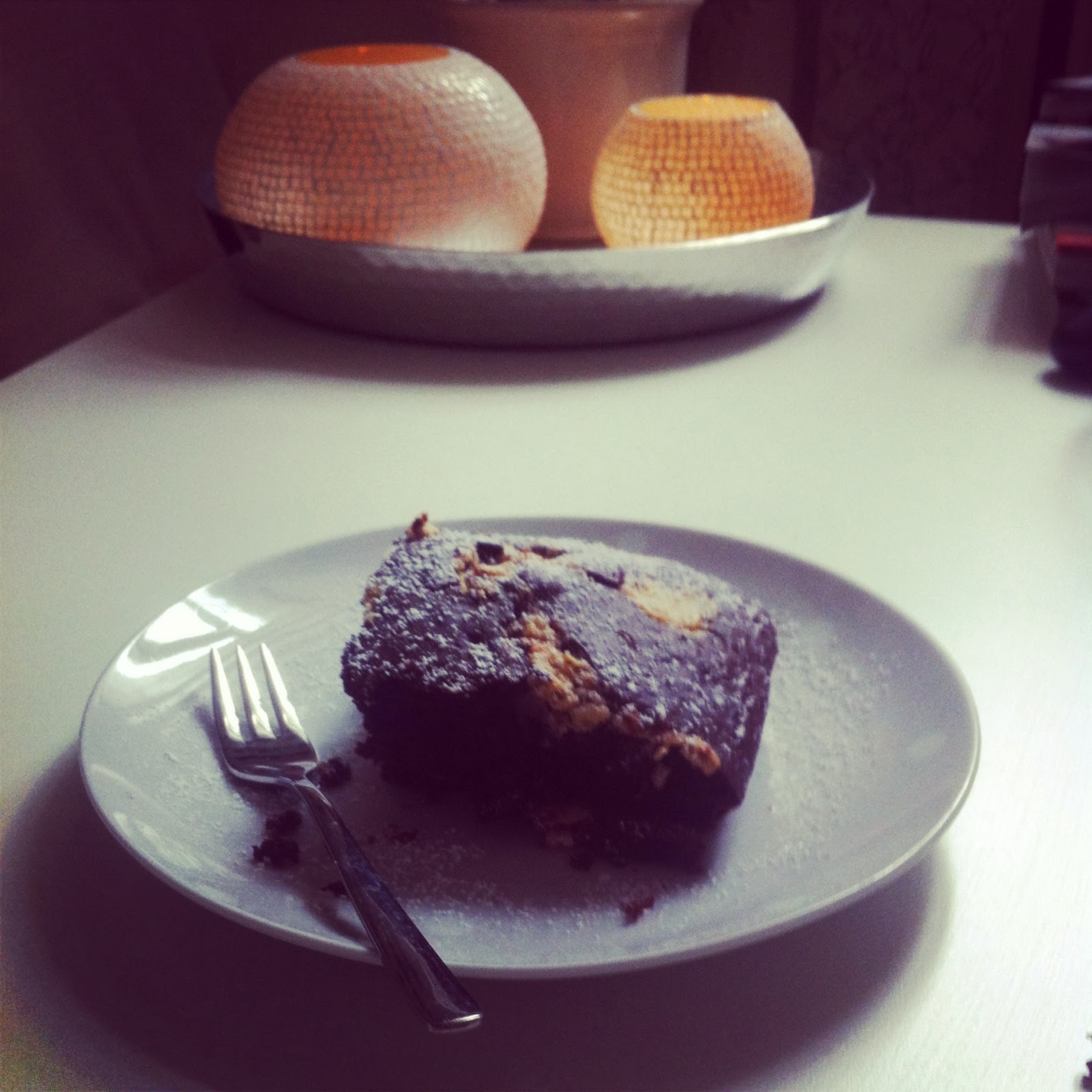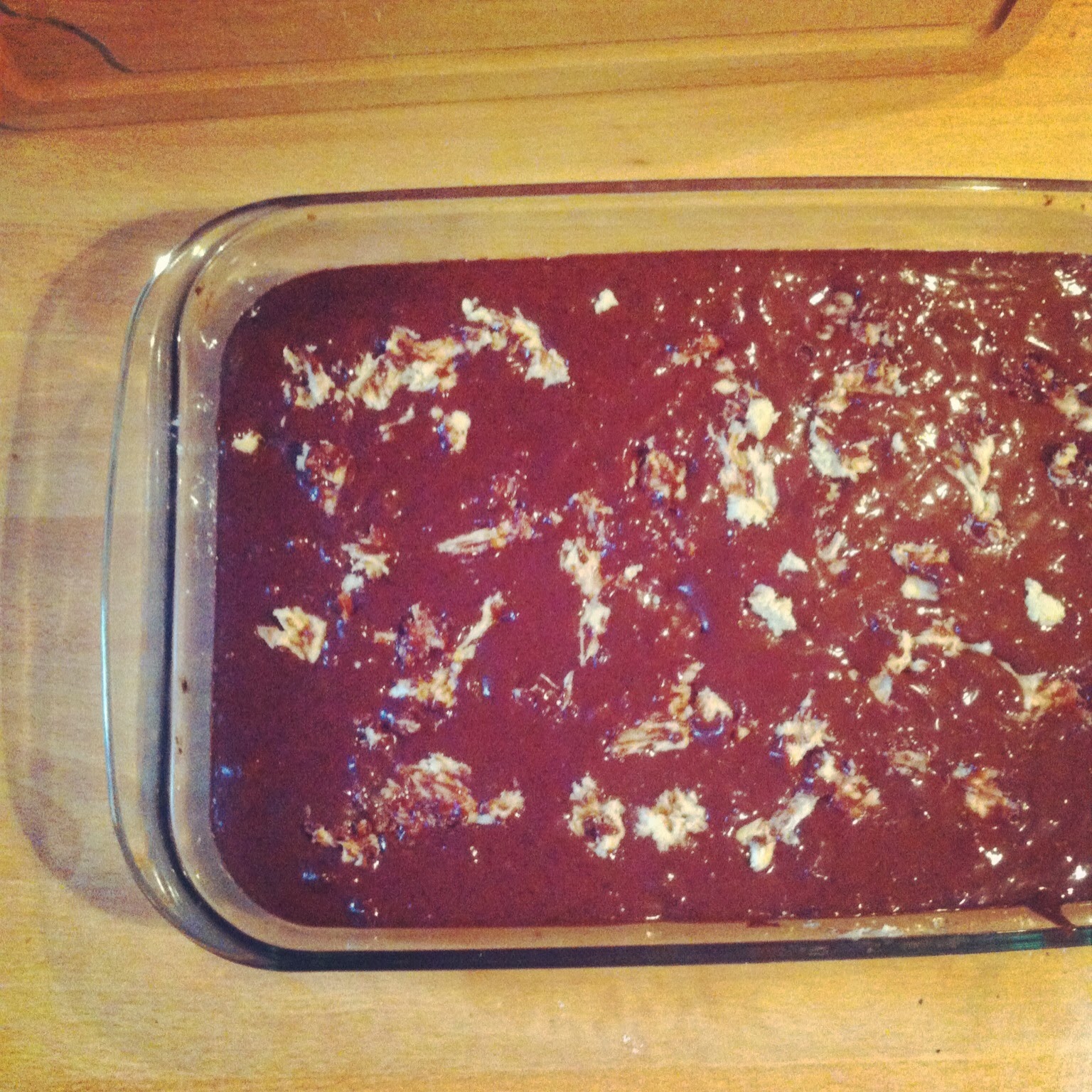 Den Ofen auf 180 Grad vorheizen, währenddessen alles ordentlich vermengen (und dabei die Küche so richtig einsauen). Nach dem Testschlecken alles in eine Browniebackform füllen (wir haben eine Glasauflaufform genommen) und mit Erdnussbutterflöckchen ca. 45 Minuten lang backen. Schmeckt in hübsche Stücke geschnitten heiß, warm und später auch noch kalt, falls denn was übrig bleiben sollte. Guten Appetit! Es lohnt sich…