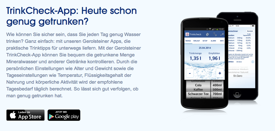 Damit man die Übersicht nicht verliert, hat Gerolsteiner auch in diesem Jahr eine passende Trinkapp zur Verfügung gestellt, die ich mir dann wohl mal herunterladen sollte: