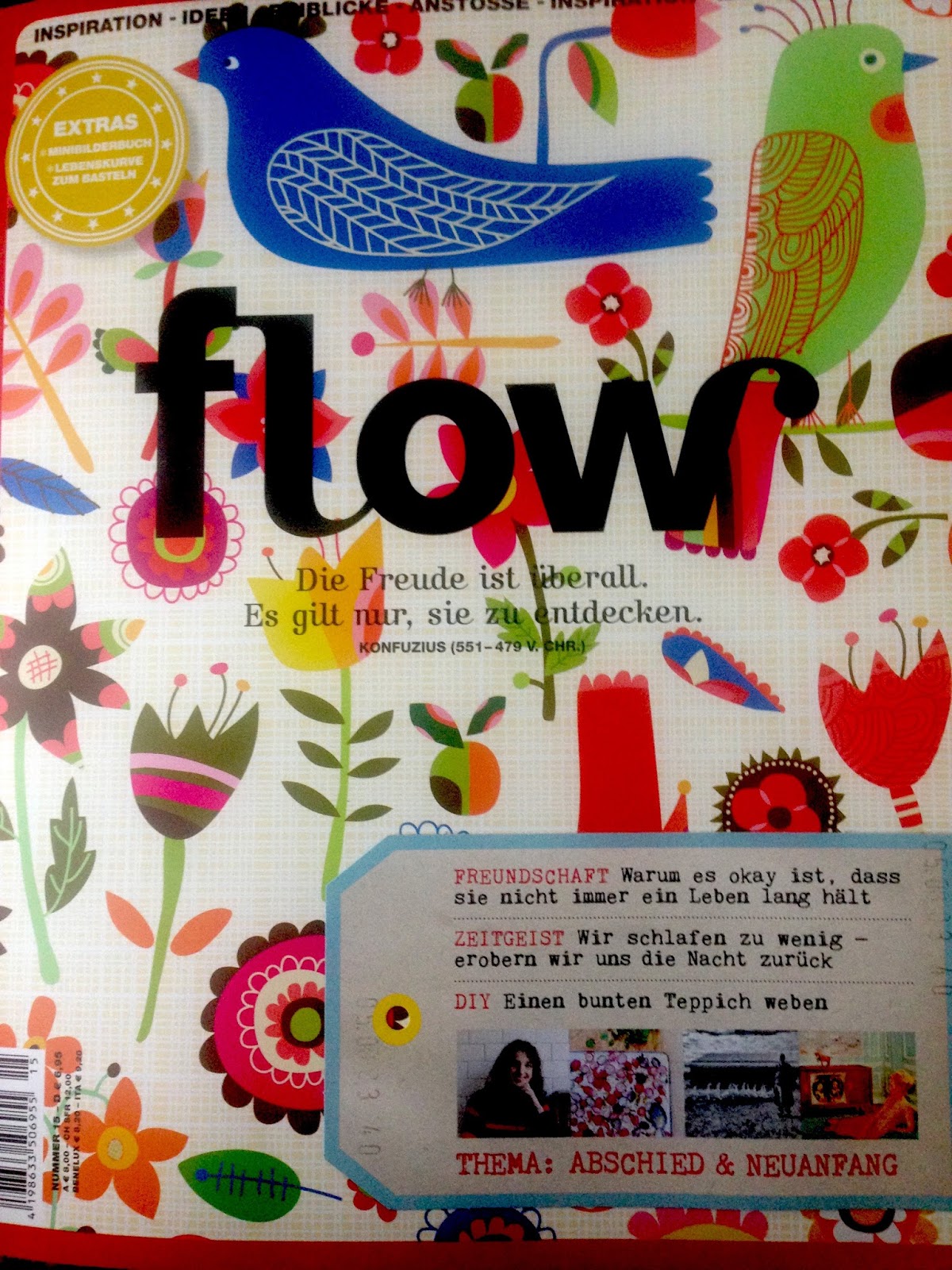 Ich bin Fan der Zeitschrift „Flow„, die es für 6,95 Euro am Kiosk zu kaufen gibt. Darin dreht sich alles um schöne Dinge und Ideen, DIYs und Gerichte, Geschichten und vieles, vieles mehr.
