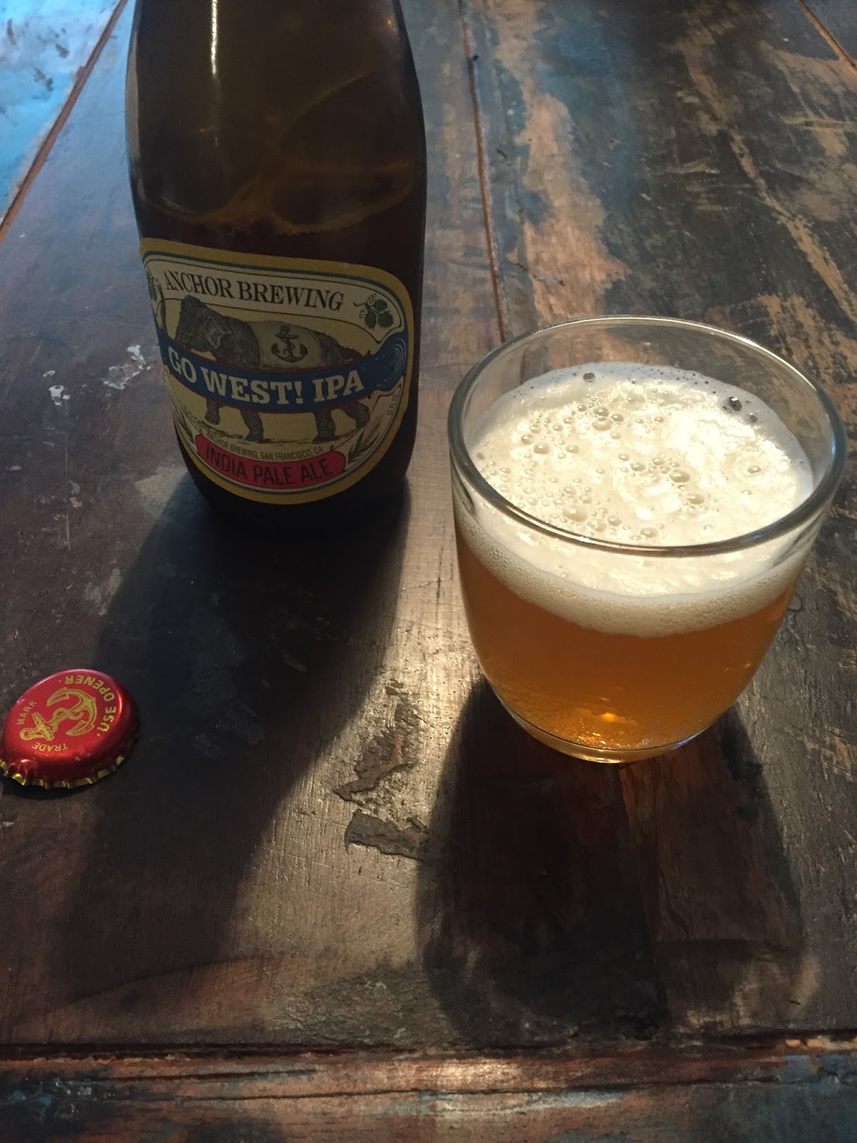 Ganz schön (also wirklich schön) bitter ist dieses IPA. Aber auch gut zitronig. Angeblich auch noch von Pinie, das kann ich aber wirklich nicht rausschmecken. Trotzdem: Das goldgelbe Go West! geht wirklich gut runter in seinen ausgeprägten Geschmäckern. Und wie gesagt: das Etikett.