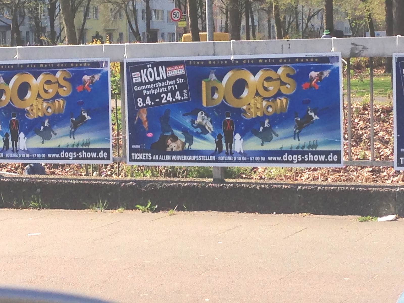 Durch die offensive Plakatierung (und das nicht zu übersehende Showzelt in Deutz) sind auch wir heute endlich aufmerksam geworden- schließlich läuft „Europas größtes und einziges Hunde- Spektakel“ bereits. „20 Darsteller, Tänzerinnen, Akrobaten und über 60 Hunde aller Rassen“ nehmen uns mit „auf eine unglaubliche Reise- emotionsgeladen, voller Temperament und tierisch komischer Überraschungen!„