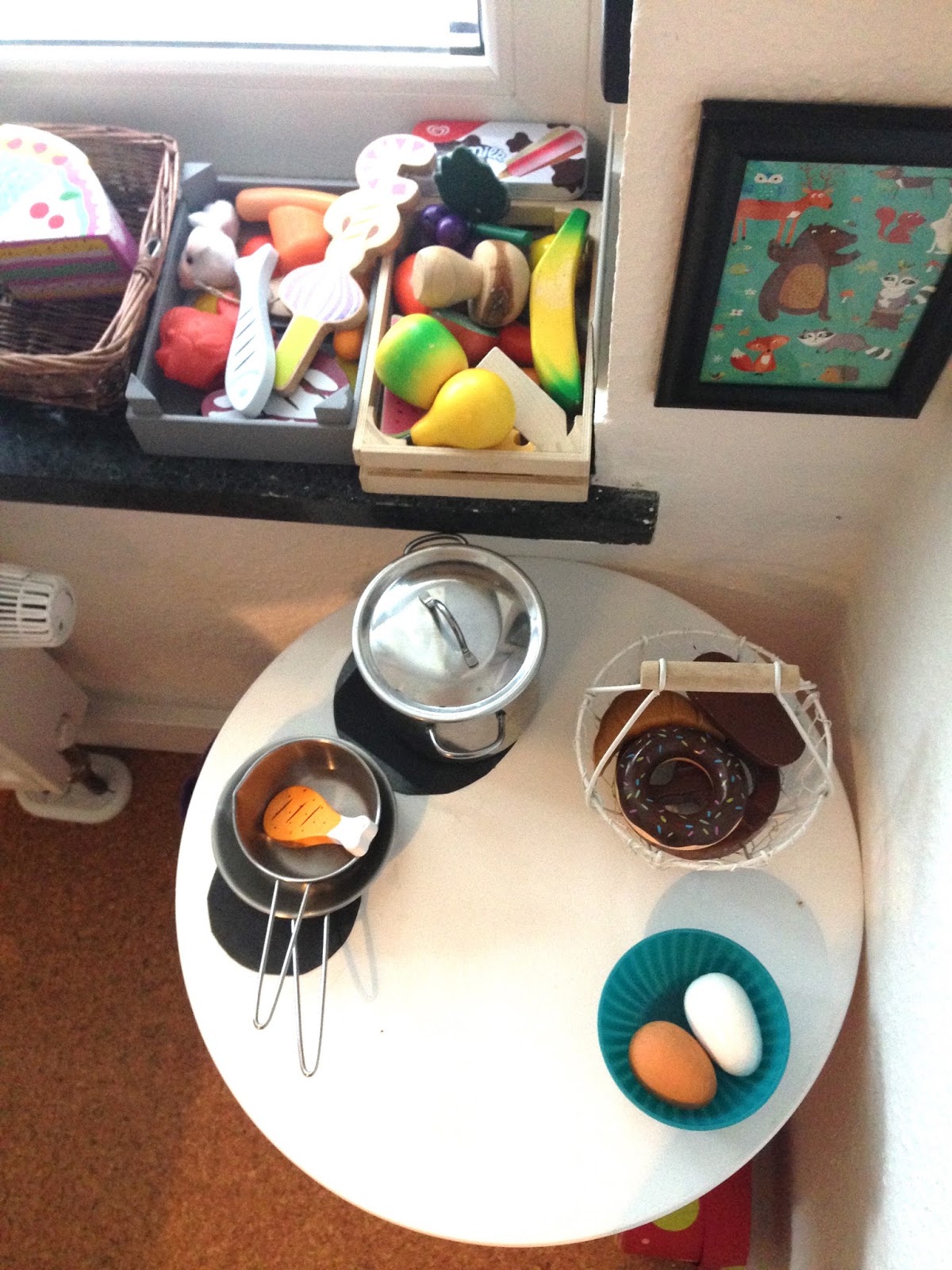 Seit einiger Zeit haben wir das Kind endlich soweit, dass es Interesse an unseren Haushaltstätigkeiten zeigt. Und am Essen. Prima! Dementsprechend hat es sich eine eigene Werkstätte verdient.
