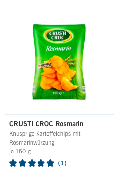 Die Bio Rosmarin-Chips von Crusti Croc sind übrigens nicht nur Bio, sonder auch gleich „organic“ (welche Kartoffel ist das nicht?). Aber gut.