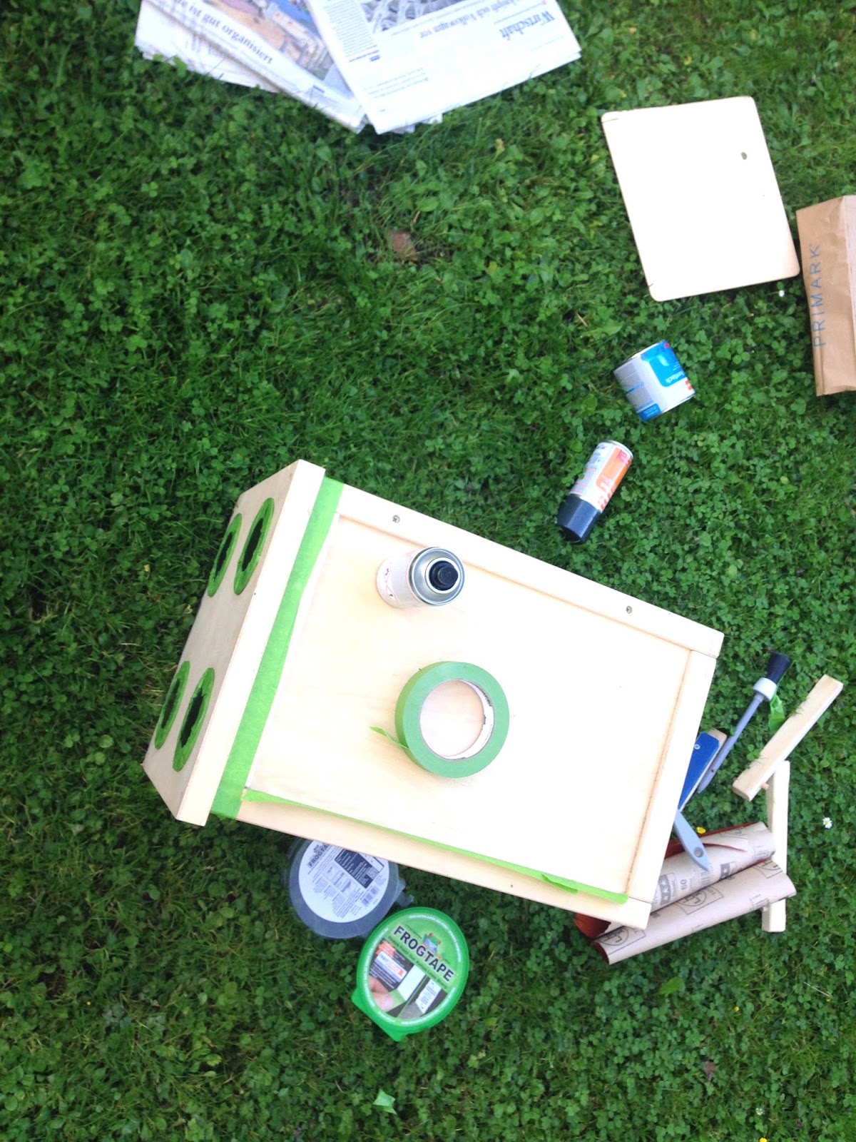 So sieht nun also die (vorerst?) fertige Spielküche aus. Der kleine Stuhl ist übrigens ebenfalls ein bearbeitetes Fundstück und auch den werden wir euch demnächst näher zeigen: