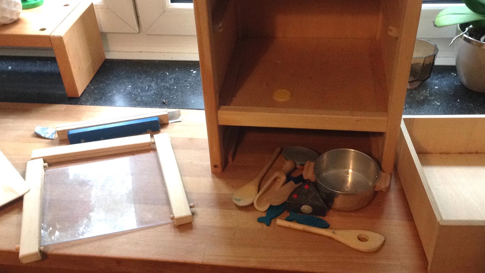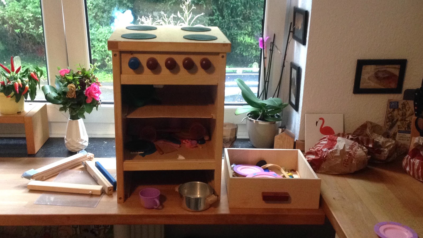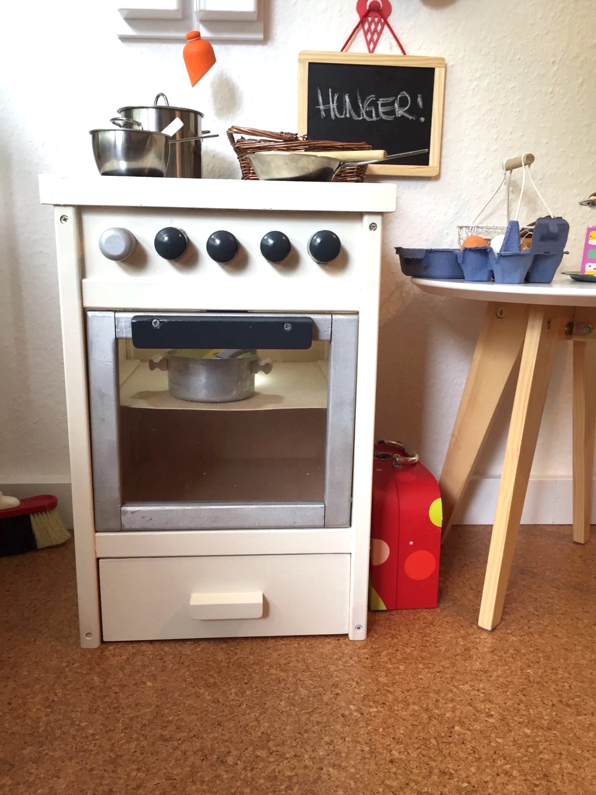 Einen Tag nachdem wir hier unsere provisorische Kinderküche für Junior gepostet haben, stellte uns jemand einen Kinderherd auf den Sperrmüll vors Nachbarhaus. Große Freude!