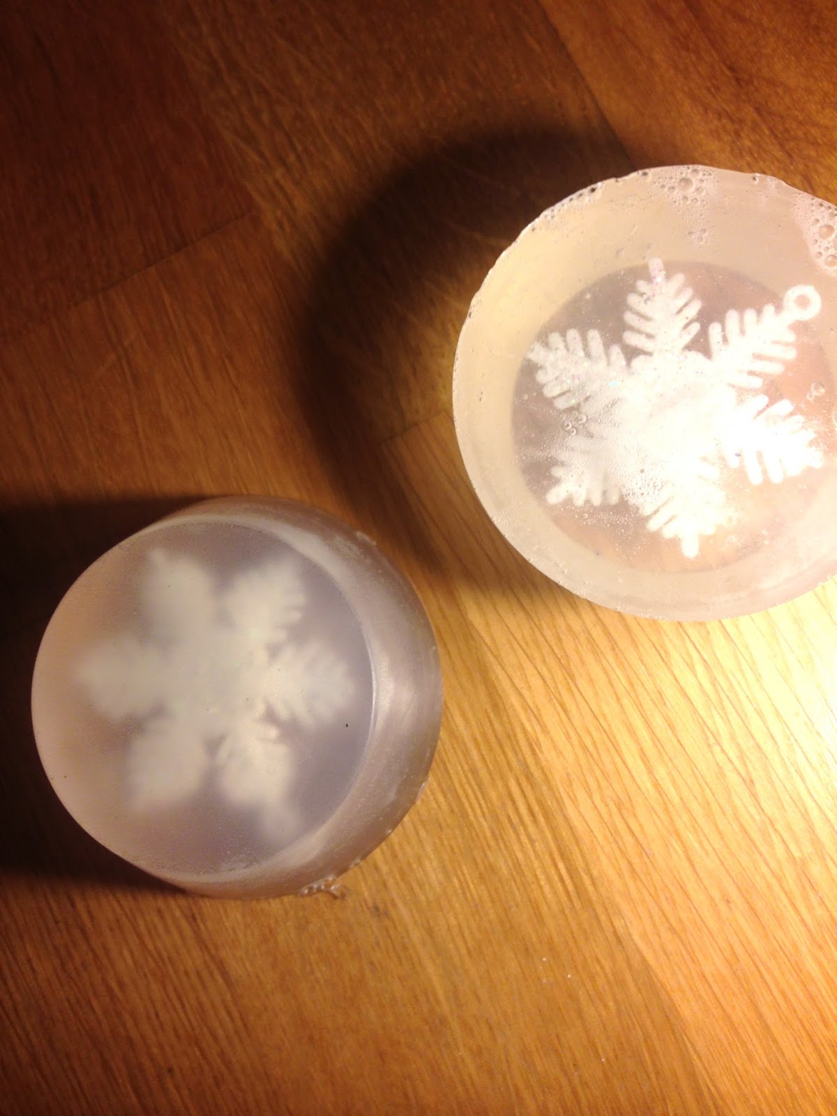 Anschließend gießt ihr den Rest der flüssigen Rohseife auf die bereits abgekühlte Masse. Fertig! Leider sind die kleinen Luftblasen auch nicht durch vorsichtiges Schütteln verschwunden. Wenn jemand einen Tipp dafür hat, bin ich sehr dankbar!