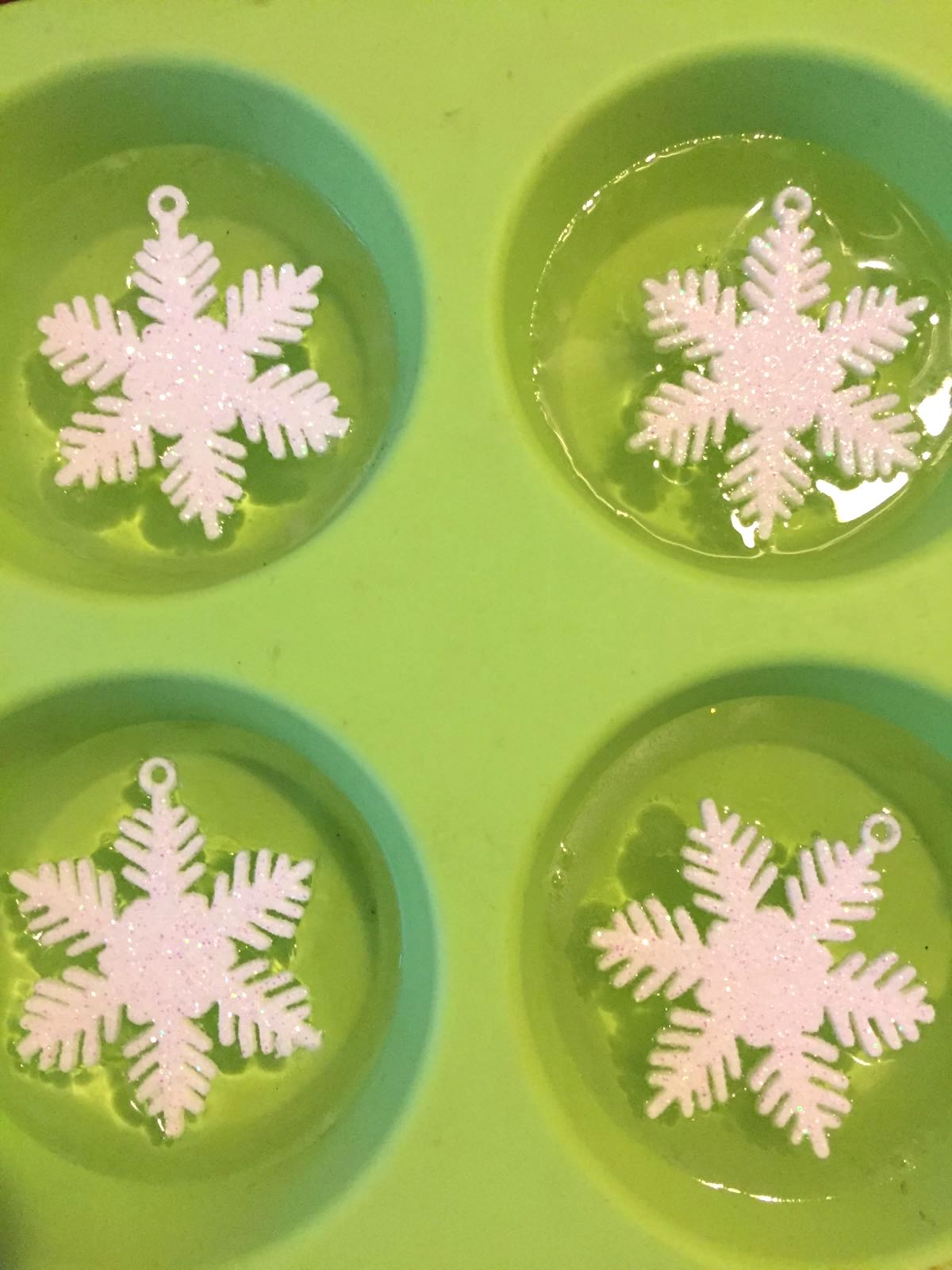 Für alle sechs Förmchen habe ich ca. 600 g Rohseife benötigt.