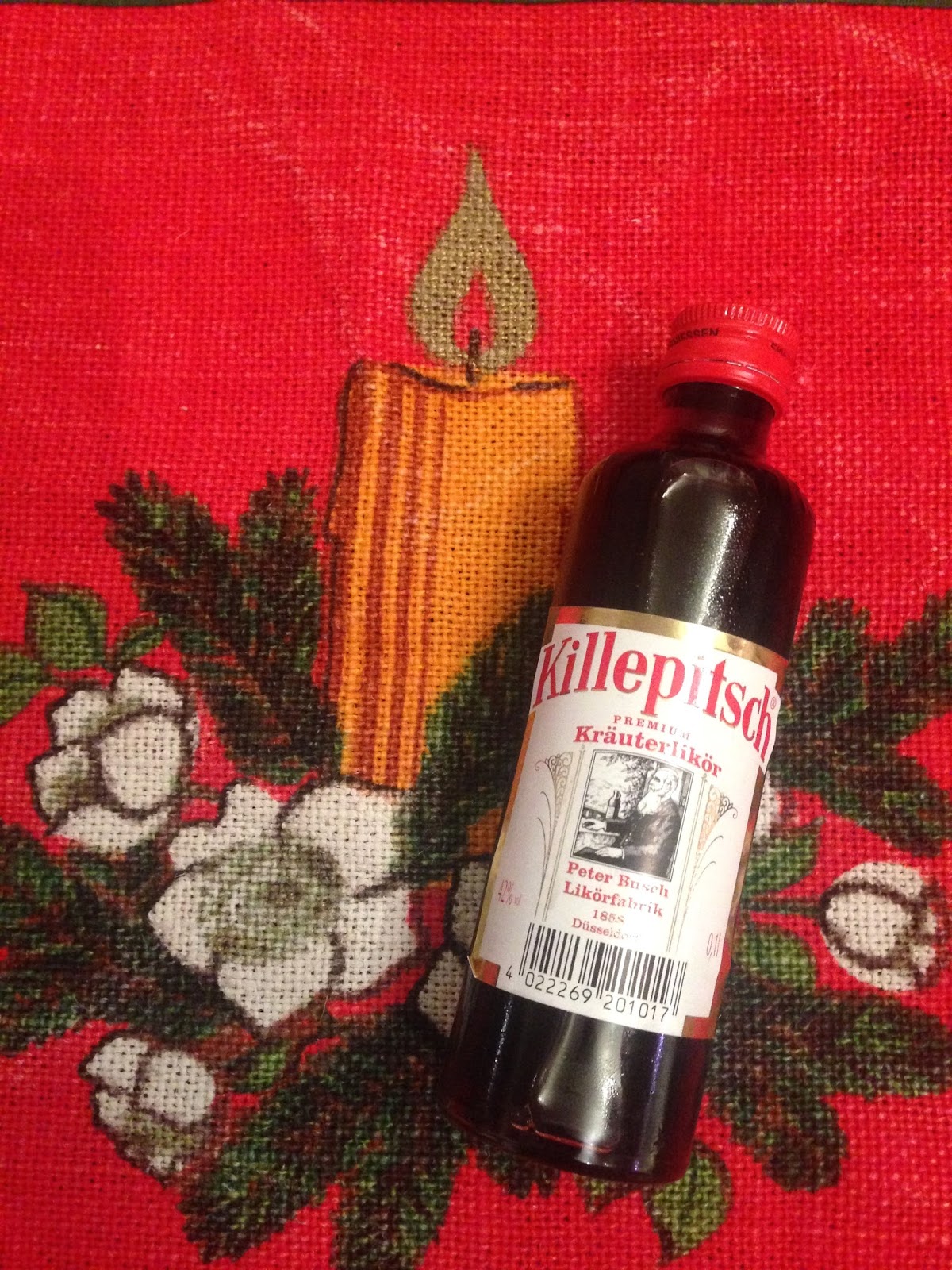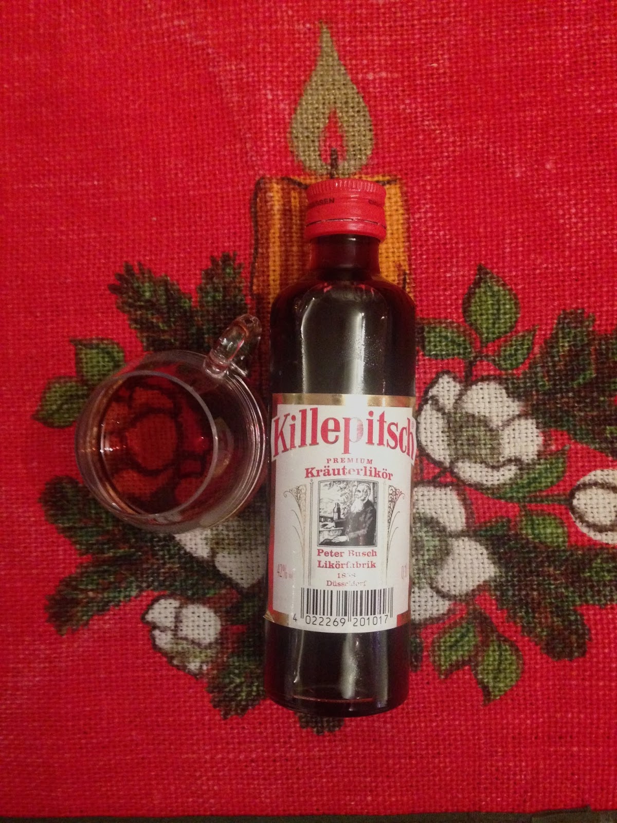 Killepitsch Kräuterlikör von 1858 hat 42% vol – und das merkt man auch: Er schmeckt kräuterig, süßlich und sehr alkoholisch. War wohl allerdings auch zu erwarten… (Ich bekomme nach einem Gläschen tatsächlich Schluckauf, huch!).