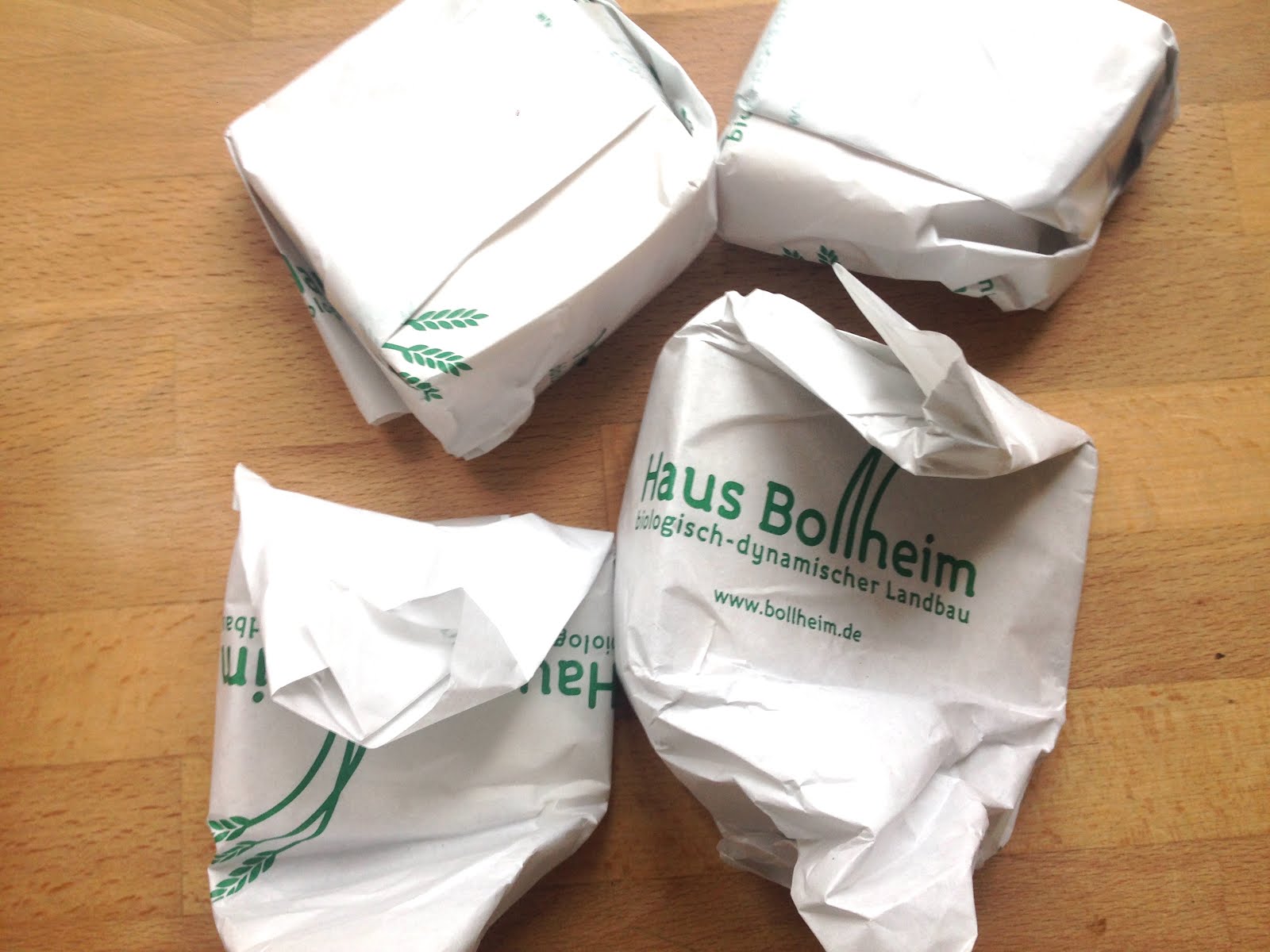 Heute ist Biomarkt: Gekauft wurde leckerer Käse beim Haus Bollheim (Warum ich dann allerdings vergessen habe den Käse fürs Foto auszupacken, weiss ich auch nicht. Nun seht ihr halt leider nur die Umverpackung…).