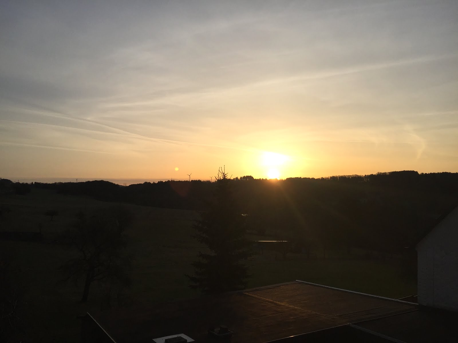 Auch an einem Sonntag weckt uns das hungrige Kind um halb 7. Hmmm, das war´s wohl mit ausschlafen!? Dafür verpassen wir dann aber auch nicht den wunderschönen Sonnenaufgang im Westerwald: