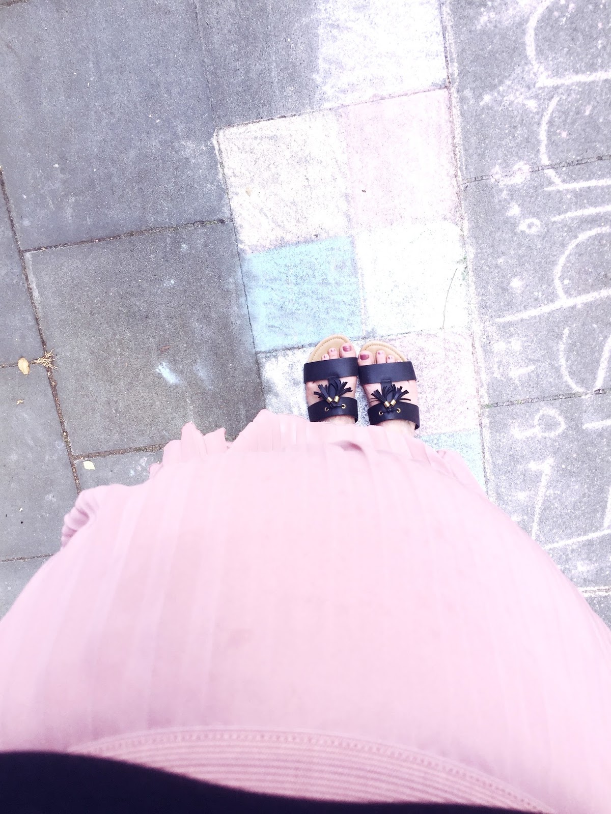 Es ist unschwer zu erkennen, dass ich ordentlich mit mir rumschleppe: Nicht nur der Bauch, sondern auch mein Gesicht, der Oberkörper und vor allem die Hüften haben richtig zugelegt und ich werfe mich nur noch in weite Kleider oder Leggings. Allerdings ließen die Temperaturen sowieso nicht viel anderes zu: Abends sind meine Beine stark geschwollen und selbst die Ringe an den Fingern muss ich ausziehen.