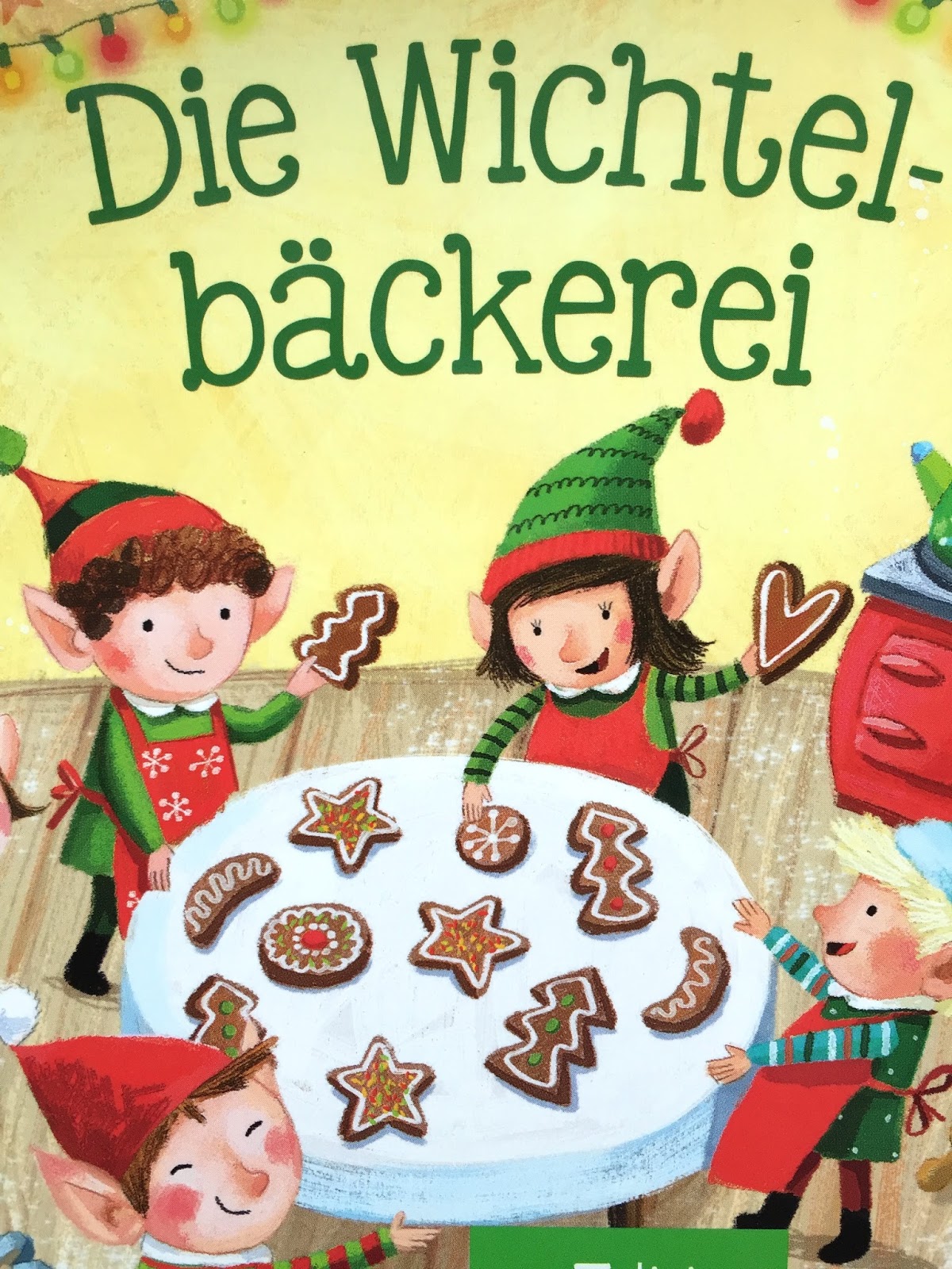 Die kleinen Weihnachtswichtel backen Plätzchen: In gereimter Form sehen wir zu welche Zutaten verwendet werden, wie die Plätzchen in den Ofen wandern und wie sie verputzt werden. Und ja: Sie sehen wirklich ganz lecker aus!